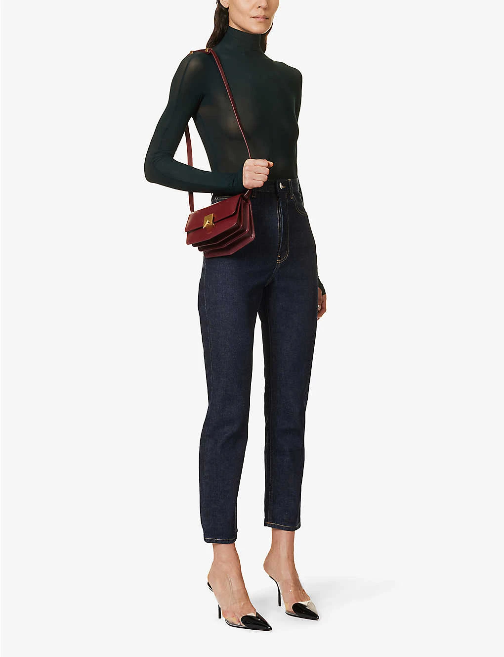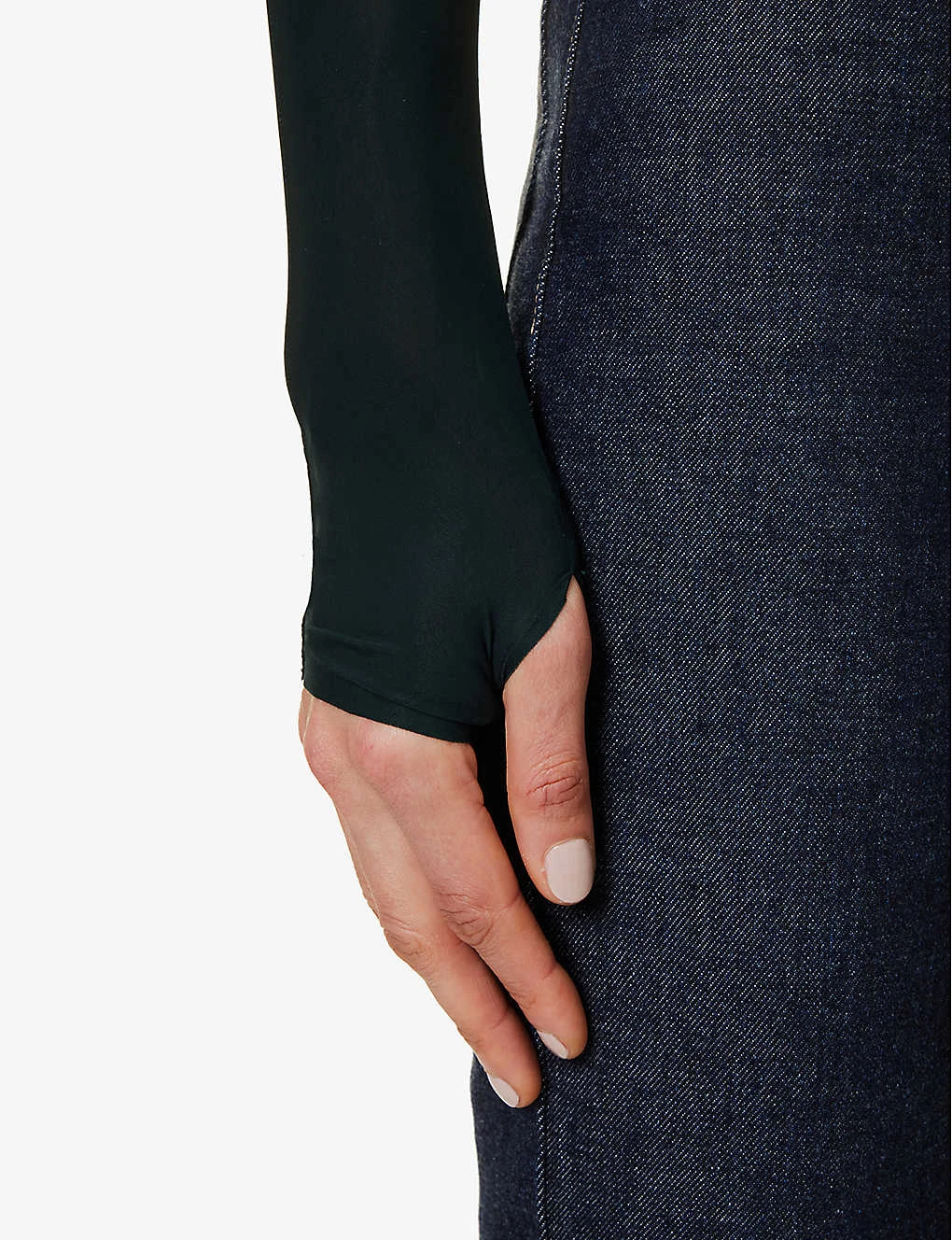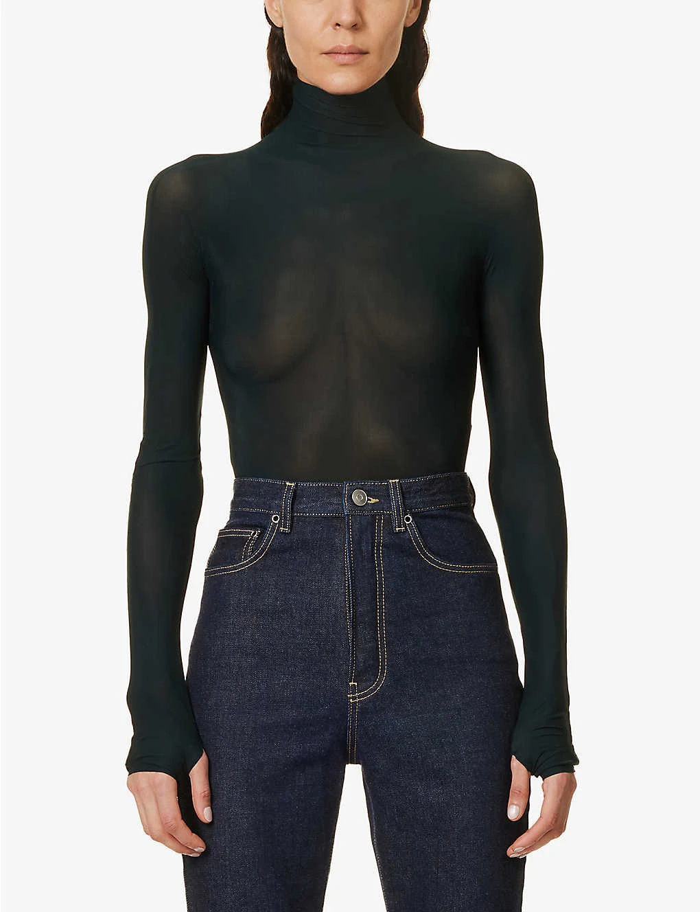 - Slim fit, high neck, long sleeves, high neck, sheer