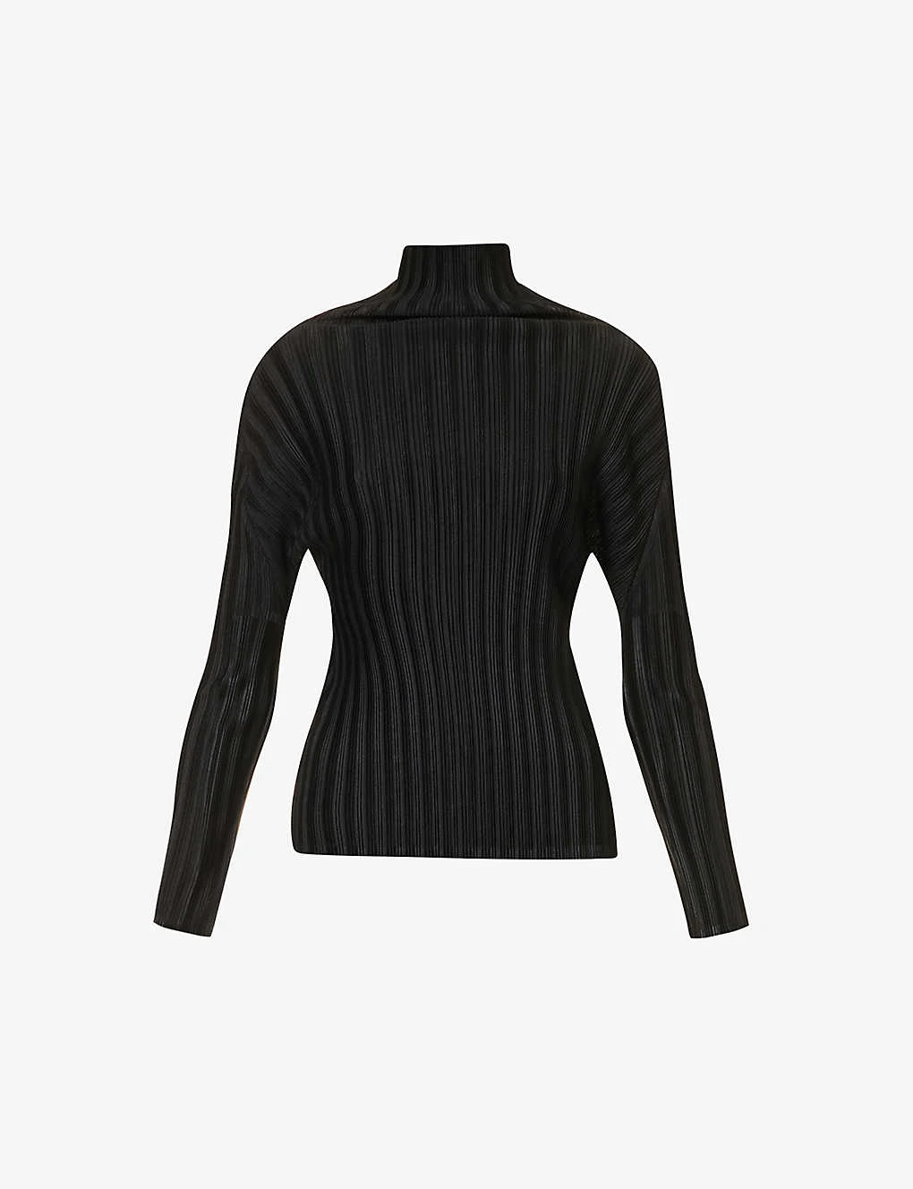 - Regular fit, high neck, long sleeves, all-over textured pleat pattern