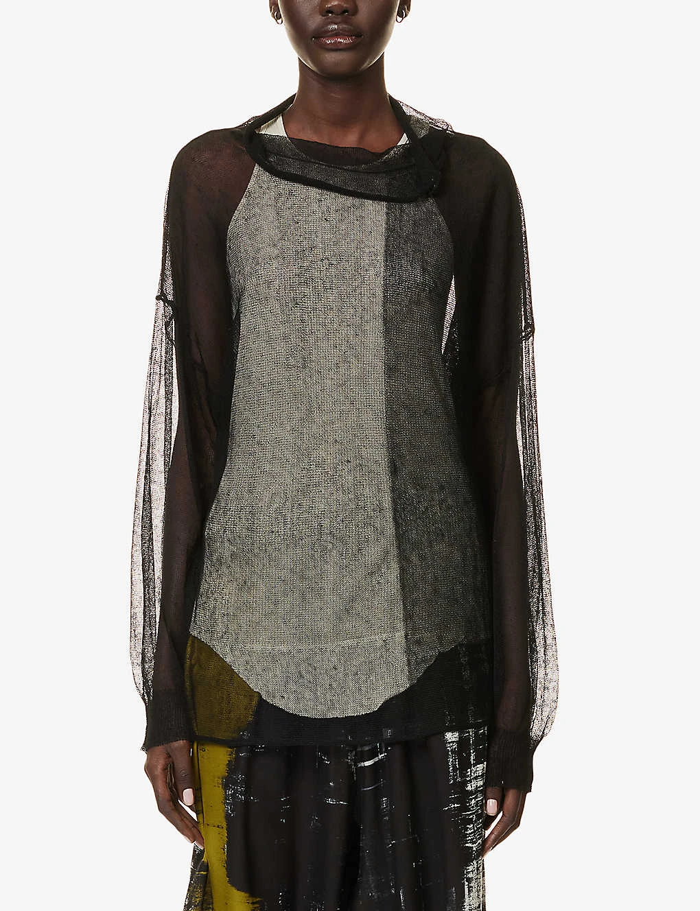 - Relaxed fit, boat neckline, long sleeves, knitted, semi-sheer