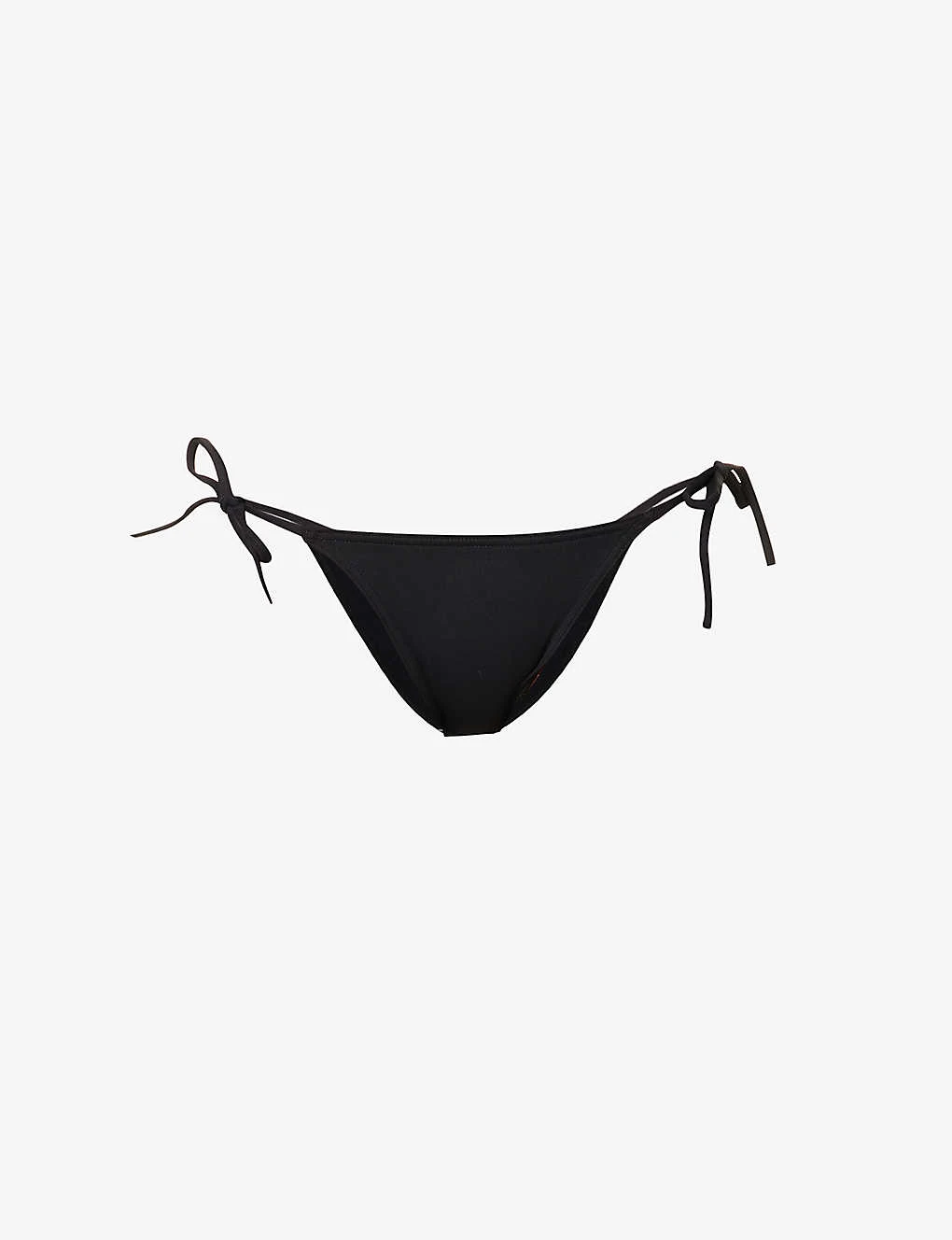 - Mid-rise, elasticated waistband, self-tie fastening at sides, high leg, full coverage at back