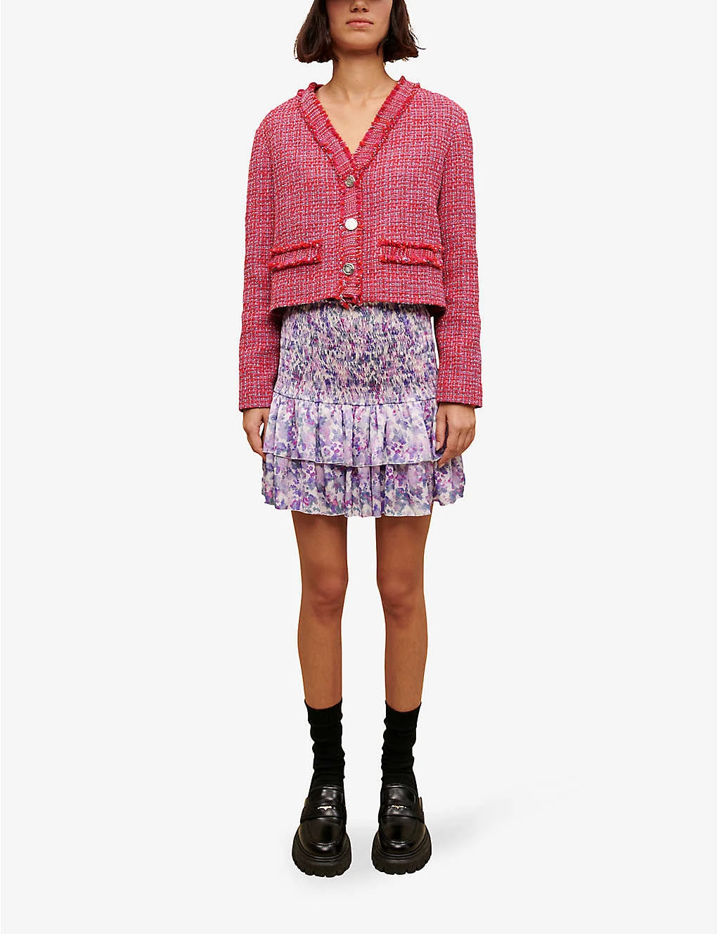 Be the first to review “Maje Juvard Floral-print Ruffled Woven Mini Skirt” Cancel reply