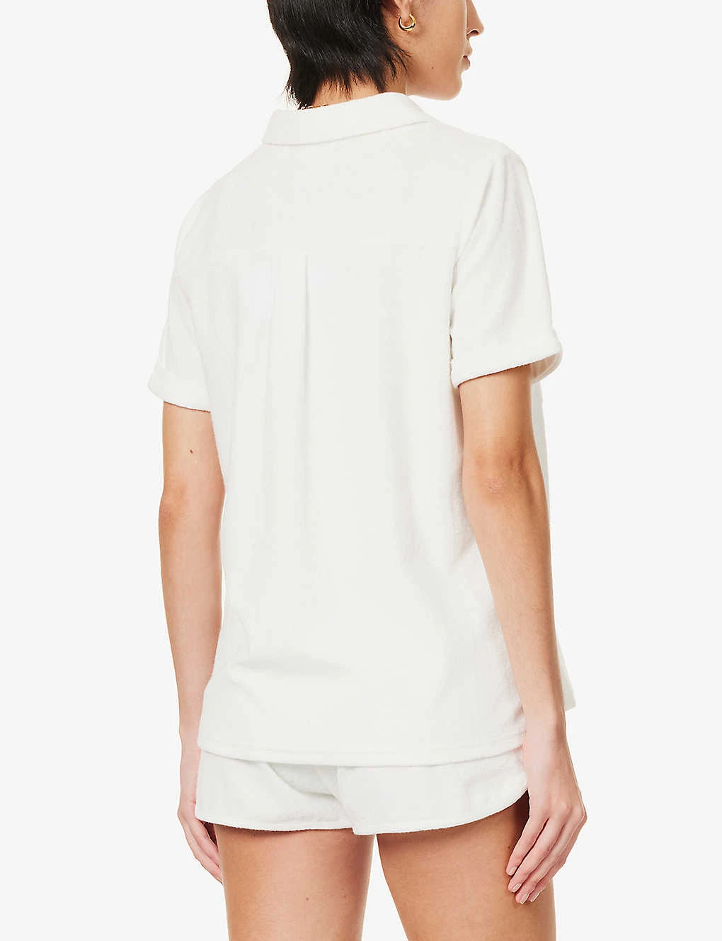 - Regular fit, collar, short sleeves, folded cuffs, gold-toned branded hardware, two flap pockets at chest, branded plaque at hem, box pleat at back, all-over towelling texture