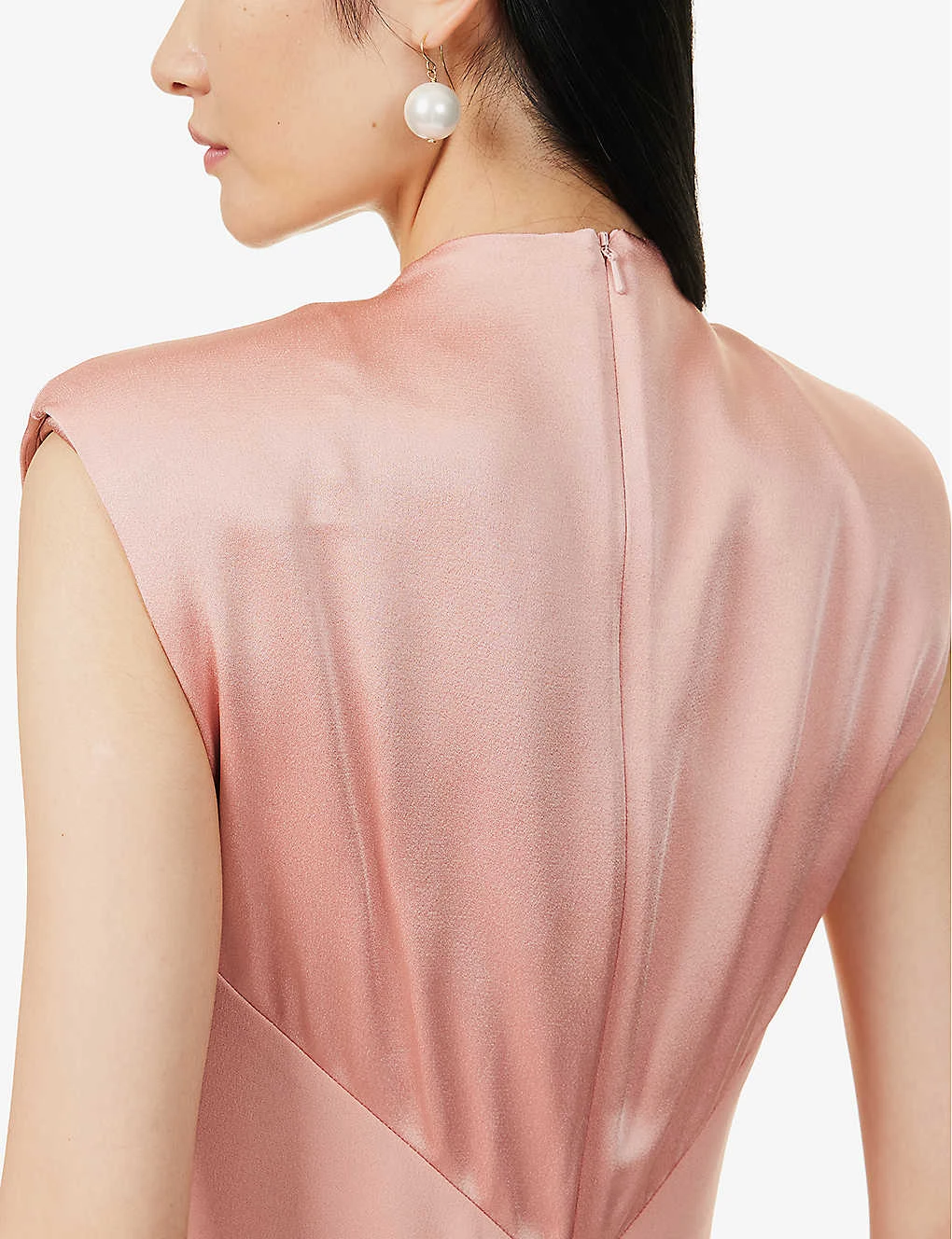 - Regular-fit, deep V-neck, shoulder pads, sleeveless, twist design at front, split at front, fully lined