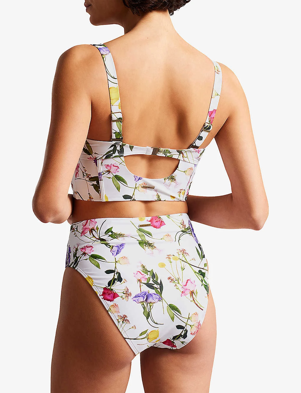 - High rise, all-over scattered bouquet print, contouring details, full coverage at back, lined