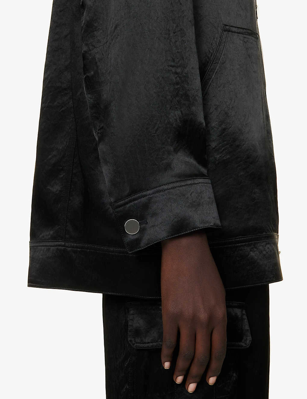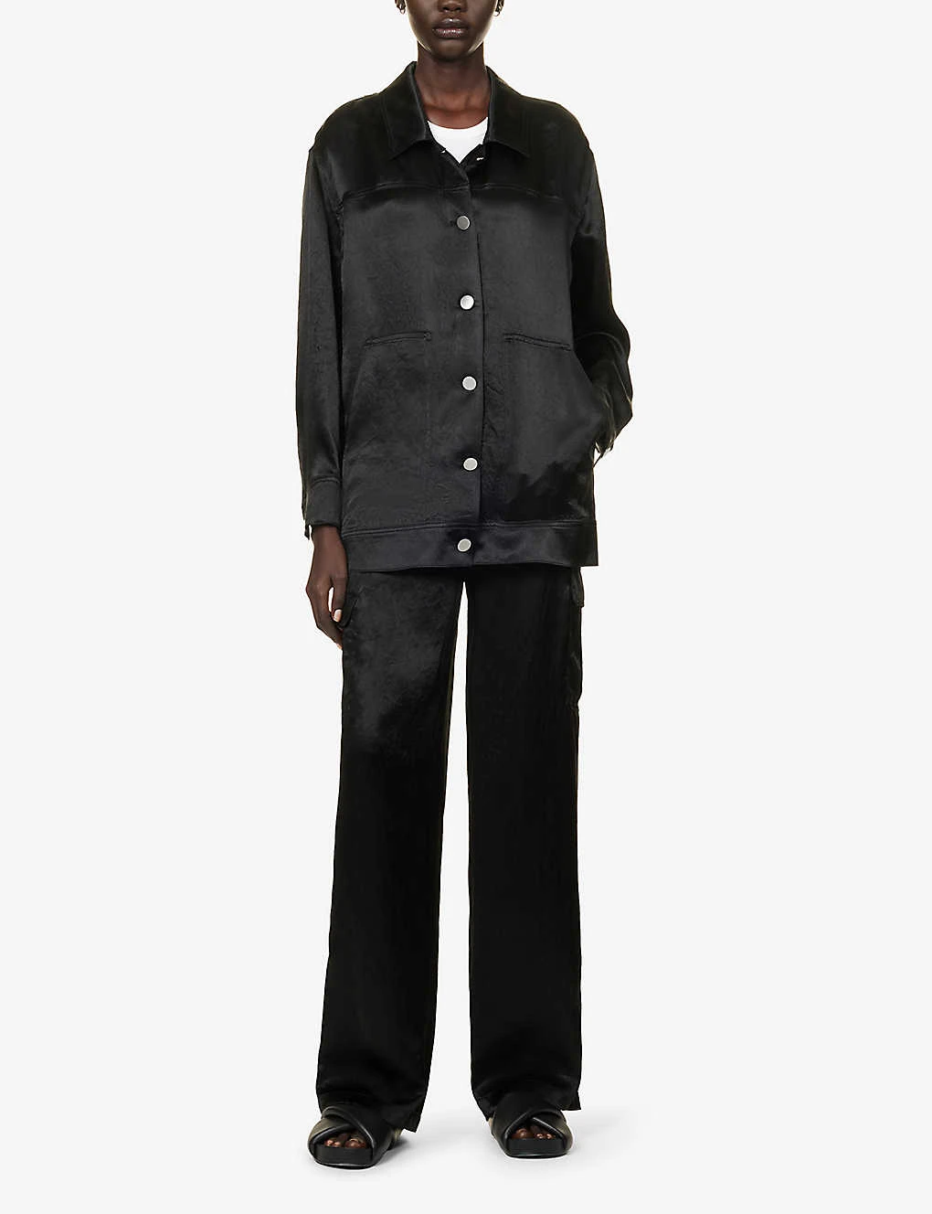 - Relaxed fit, collar, long sleeves, buttoned cuffs, two slip pockets at front, silver-toned hardware